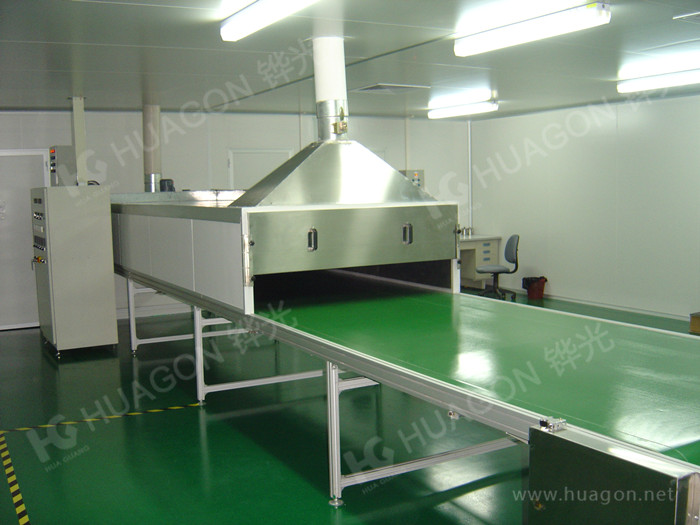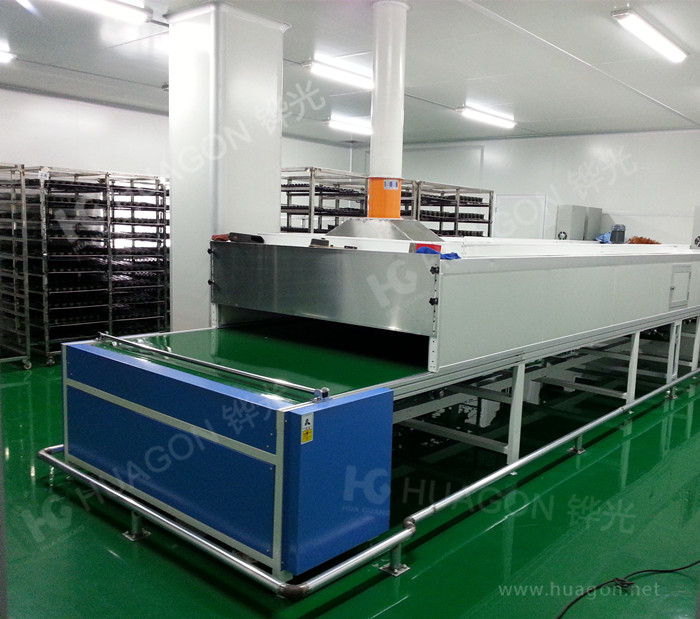 上料-手動靜電除塵-素材預熱-多任務站手動/自動噴涂-靜置-隧道式烘烤-冷卻-下料